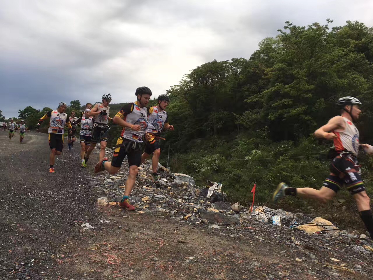 After a another few kms of running we began the mountain bike stage (44km), there was some awesome descents amongst the climbs and we kept Thule in sight for most of it. By 28kms in we ended up on a rugged rock trail where we must carry bikes and tread in stiff MTB shoes for several kms.
