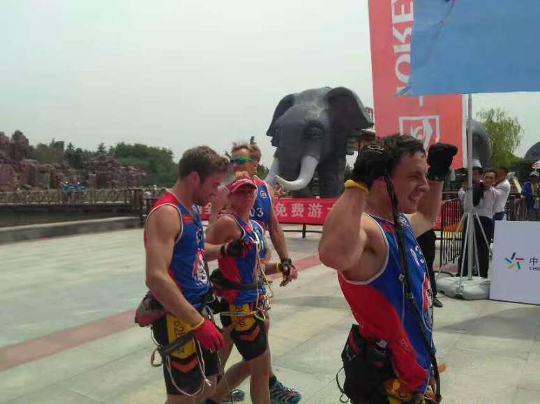 5km run/gps orienteering. Team Purao biomed caught us at the transition so we started the orientation together. It’s a practiced skill to put in gps coordinates while running. We needed to locate 4 checkpoints in a theme park. We ran with Purao until the 4th check point where we were 50m back from them and my GPS pointed a direction that was different to Purao’s direction! I yell out to the team to follow and luckily the checkpoint was right there, immediately putting a 50m gap on Purao. Then it was 150m to a zipline. However we knew that the timing chips we race with were time neutal due to safety at this point!