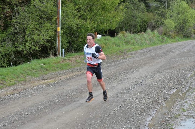 Running swiftly in the 17km run through the Motu trails and gravel roads but only got 30secs out of him. The sun came out which was great to try and warm up.