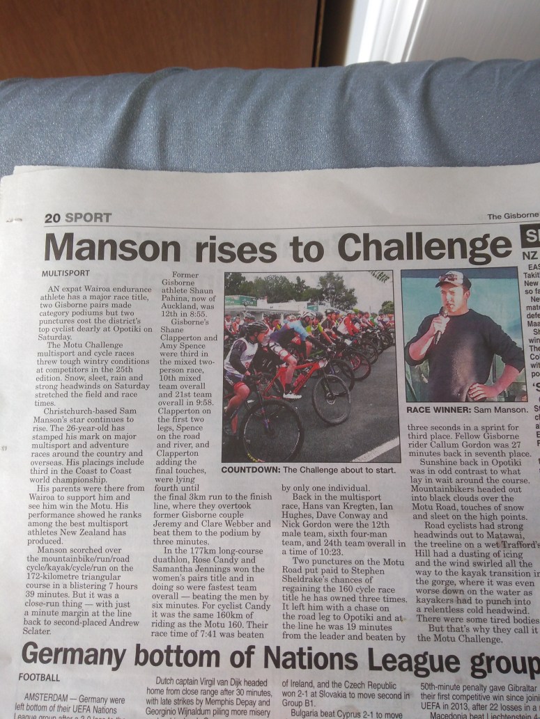 Motu Challenge has a strong place for me as it the closest multisport race to my home town Wairoa, so the terrain is very similar to what I grew up in. Rugged country. It’s also times well to test where I am at in the coast to coast build up.
