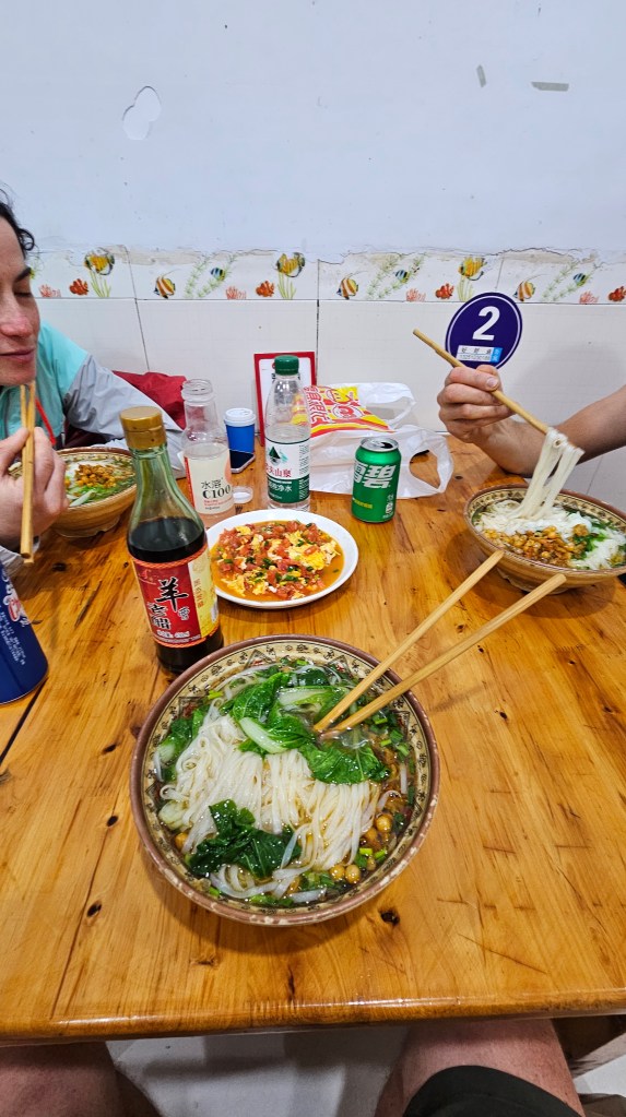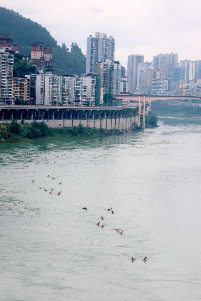 Starting back at the town square we ran east up the river, had a short chair carry (only 100m, super short) then ran down to the river for more river kayaking on the Wujiang River. Awesome, we love river kayaking! Working hard from the start we were quickly near the front of the chaos with only Flavio’s team just in front, then crept past them around 8kms in. 18km of kayaking again all downriver.