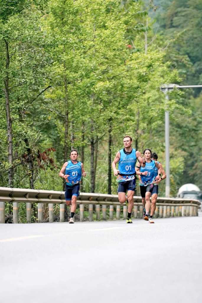I thought I swan ok, heart rate good, controlled and smooth but I was quite a bit slower than rest of my team! Deb swam in front of me the whole way as a way for me to sight and maintain a good line, she did backstroke to keep an eye on me too, legend. Her yellow swim cap was nice and easy to spot. We came out of the water with Flavio’s team in first (Team Kiwi’s can fly – They were the next closest foreign team in the overall rankings and were close to us in the over all times, especially because they opted to not attempt the fire lighting yesterday). We all ran a good pace in the 1km run to the TA. I was a bit ill again in tummy. I had some of the teams Coke drink waiting for us. But not really sitting that well. Then straight into the 12km road run, predominantly uphill! Solid pace from the boys Sam and Alex towing, I just tucked in behind and stayed close. Legs and lungs happy with pace, possibly could have gone slightly faster but not much, definitely couldn’t tow, but mostly due to strange head and tummy feeling ill. Flavio’s team and the ‘Wulong Karst’ team were easily spotted whenever we looked back not too far away, however for now we held the lead.