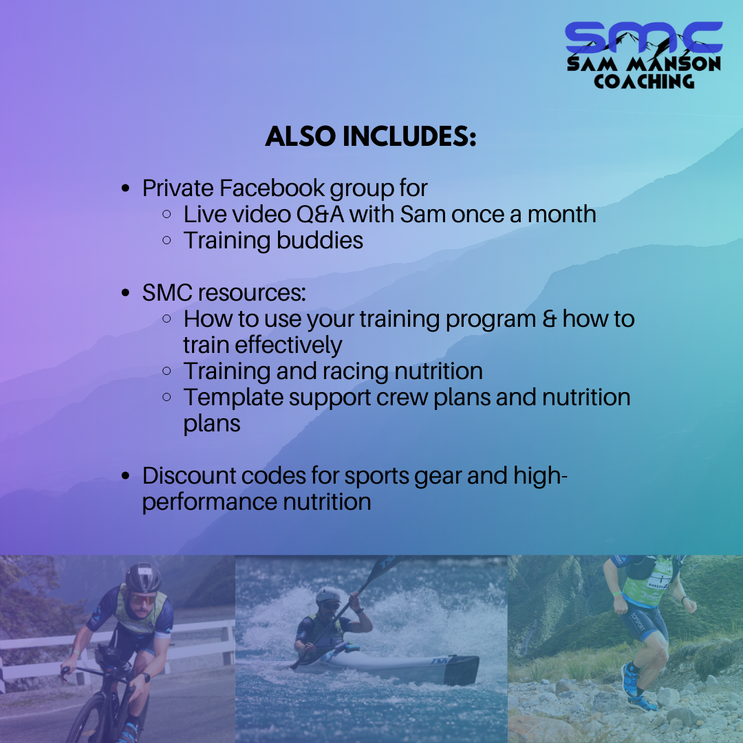 It is important to note that other than the resources provided and the Facebook Live Q&A, Sam cannot provide any individualised coaching. This is due to his commitment to his athletes that he coaches full time on his comprehensive training plan. These plans has been created to ensure that all athletes of all abilities have access to the information they need to make the most of their Coast to Coast campaign at an incredibly low cost. You be able to talk with Sam and ask as many questions as you like during the free monthly Facebook live in a private Facebook group.